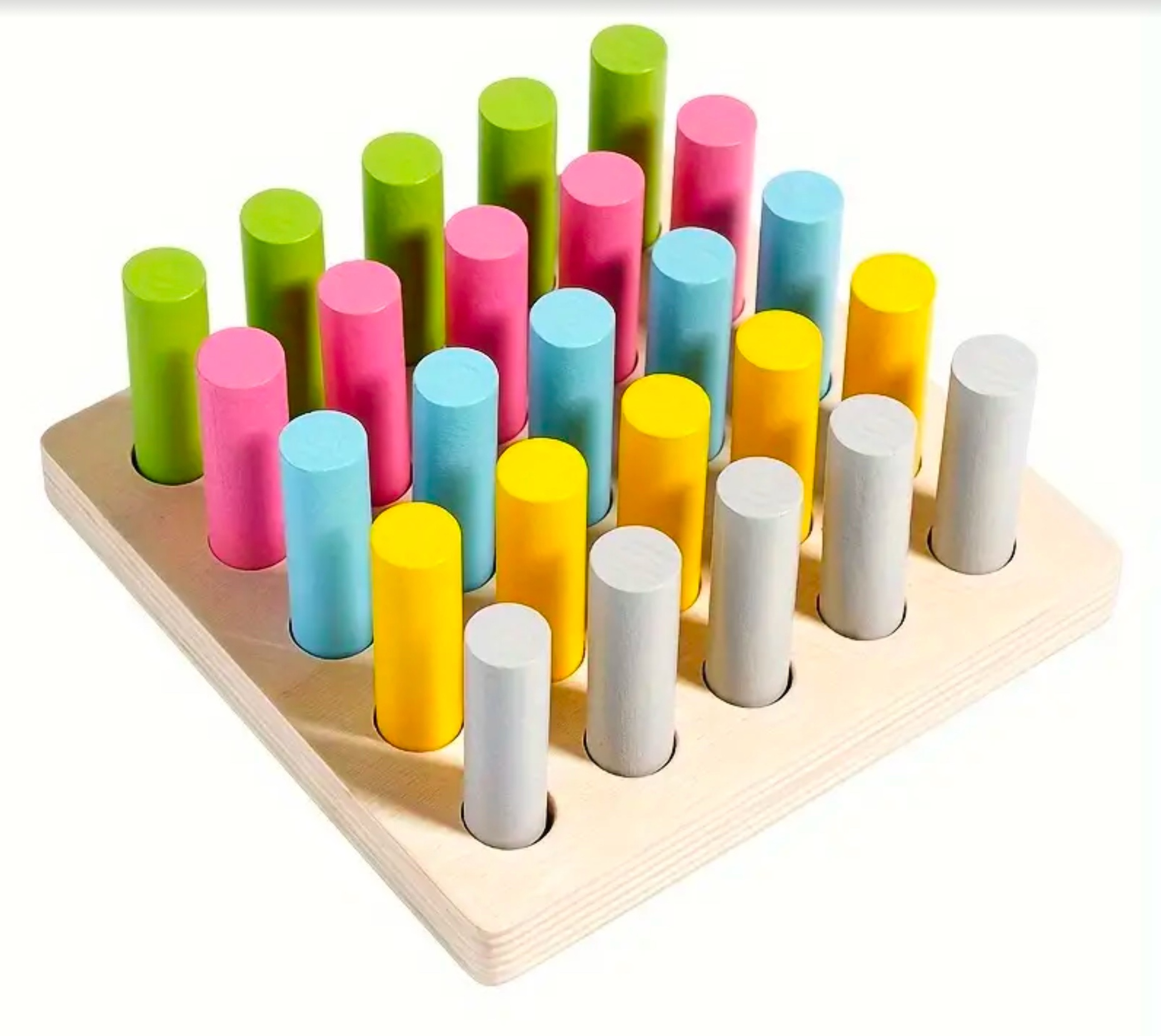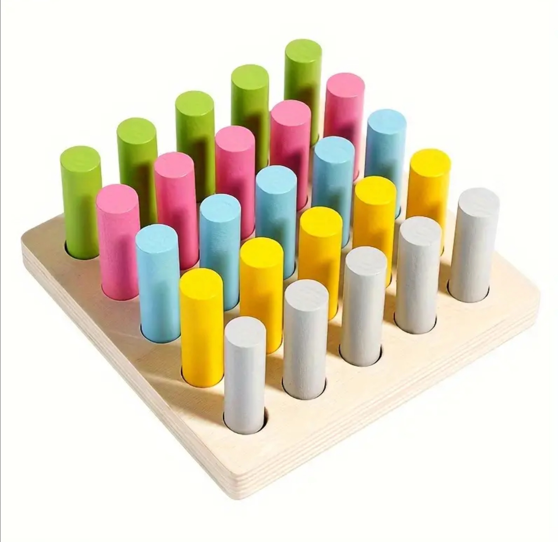 لعبة تعليمية مصنوعة من الخشب عالي الجودة، تحتوي على أسطوانات ملونة تُساعد الأطفال على تعلم العد، للتعرف على الألوان، وتعزيز المهارات الحسية والحركية الدقيقة. مناسبة للأطفال من 1 إلى 3 سنوات، تُحفّز التركيز والتنسيق بين اليد والعين